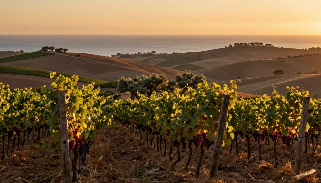 Qui il clima è caldo e luminoso, ma spesso ben ventilato. Le escursioni termiche serali, quando ci sono, aiutano a preservare profumi e freschezza. Anche i suoli contano molto. Il Frappato dà spesso il meglio su terreni sabbiosi o calcareo-argillosi, dove la pianta tende a produrre grappoli e bucce che portano meno “peso” e più fragranza.