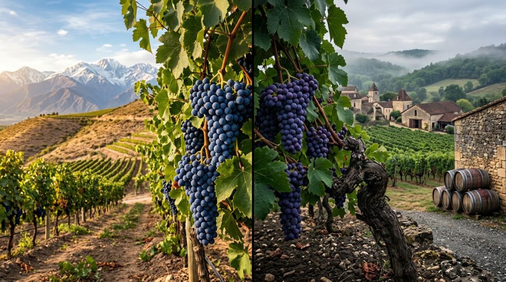 In Francia il Malbec parla più di terra; in Argentina parla più di sole, quota e ampiezza del frutto.