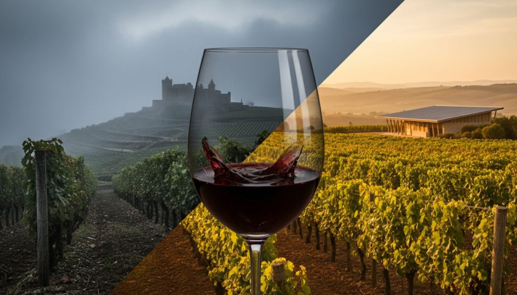 Stesso vitigno, due accenti diversi: Francia più severa, Uruguay più solare.